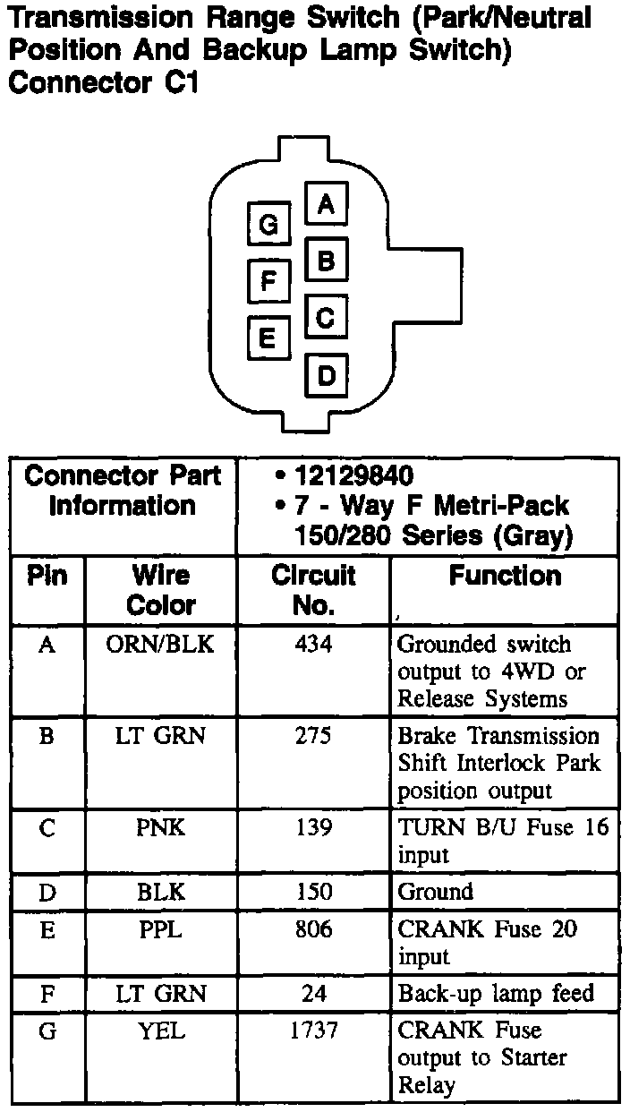 Transmission Range Switch (PNP And Backup Lamp Switch) Connector: C1: