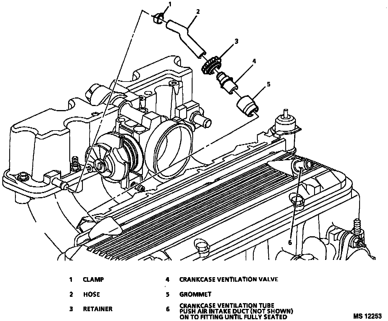 Refer to the illustration for the replacement of the crankcase ventilation system components.