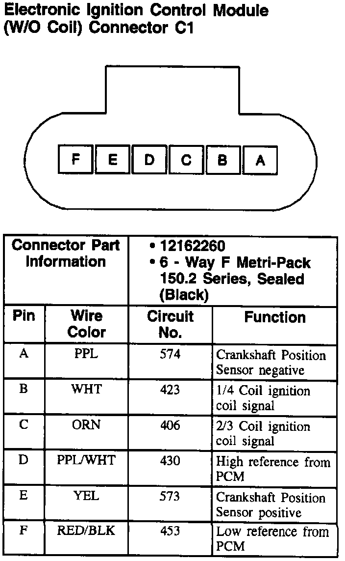 Electronic Ignition Control Module (W/O Coil) Connector: C1: