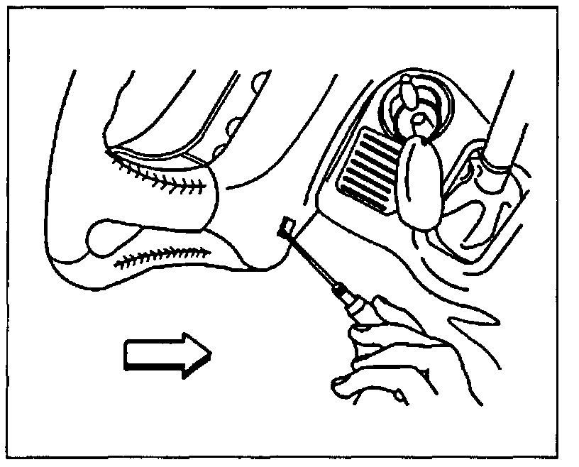 6. Insert a screwdriver into each access hole and push the left spring to release the pin that retains the inflator module.