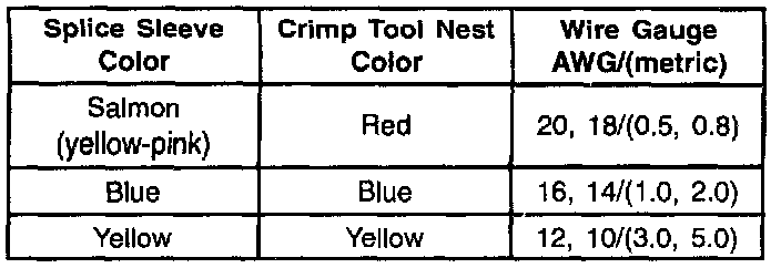4.1. Select the proper sealed splice sleeve according to wire size. See the following table for color coding of the splice sleeves and the crimp tool nests.