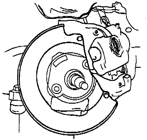 Important: Support caliper with a piece of wire to prevent damage to the brake hose.