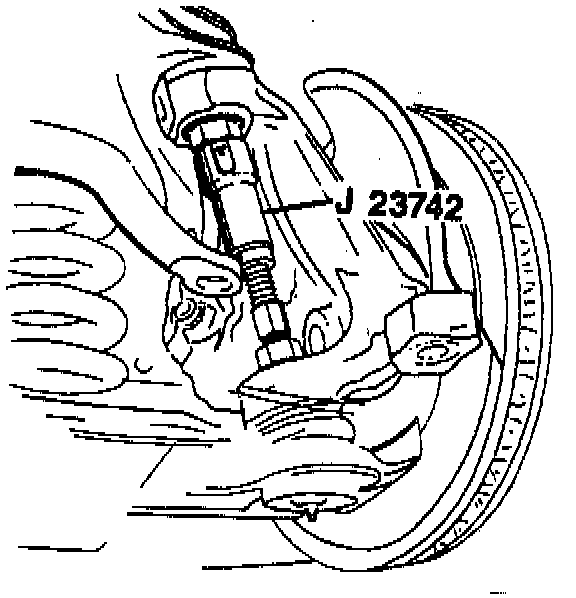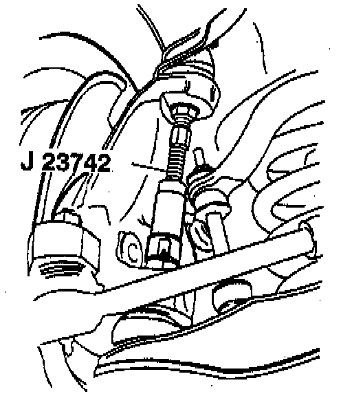 8. Ball studs from the knuckle using J 23742. Refer to "Ball Joint Replacement."
