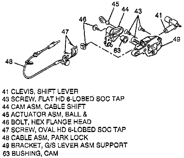 7. Park lock cable assembly (48) from support bracket (49). Insert retaining clip.