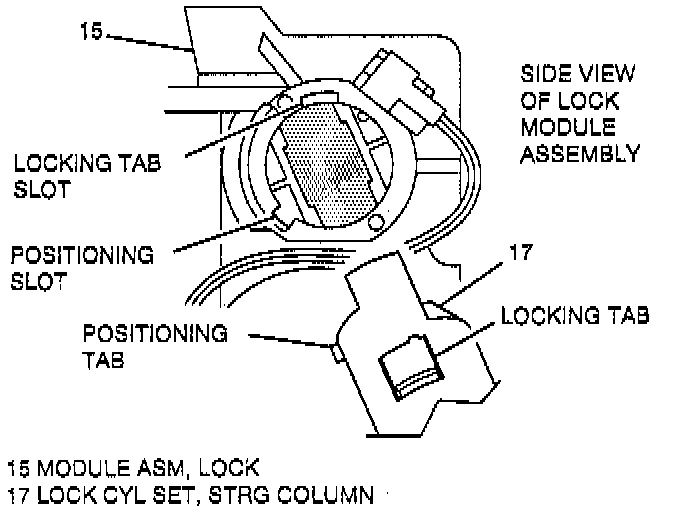 - Line up locking tab with slot in lock module assembly (15) and push into position.