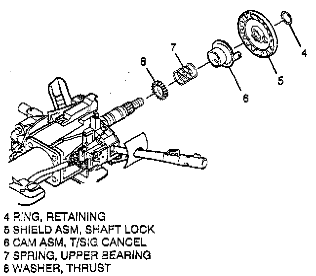 4. Turn signal cancel cam assembly (6).