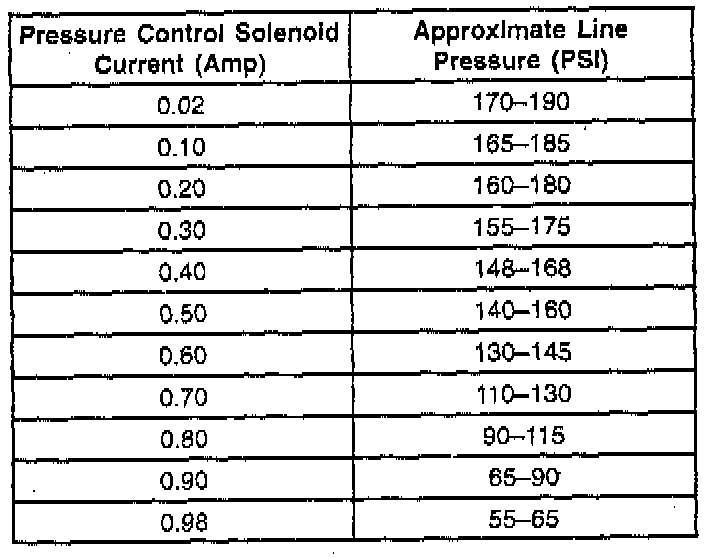Before performing a line pressure check, verify that the pressure control solenoid for the transmission is receiving the correct electrical signal from the PCM: