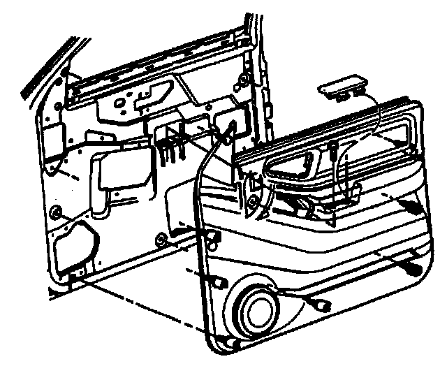 ^ Use tool J 38778 to release the door trim panel retainers.
