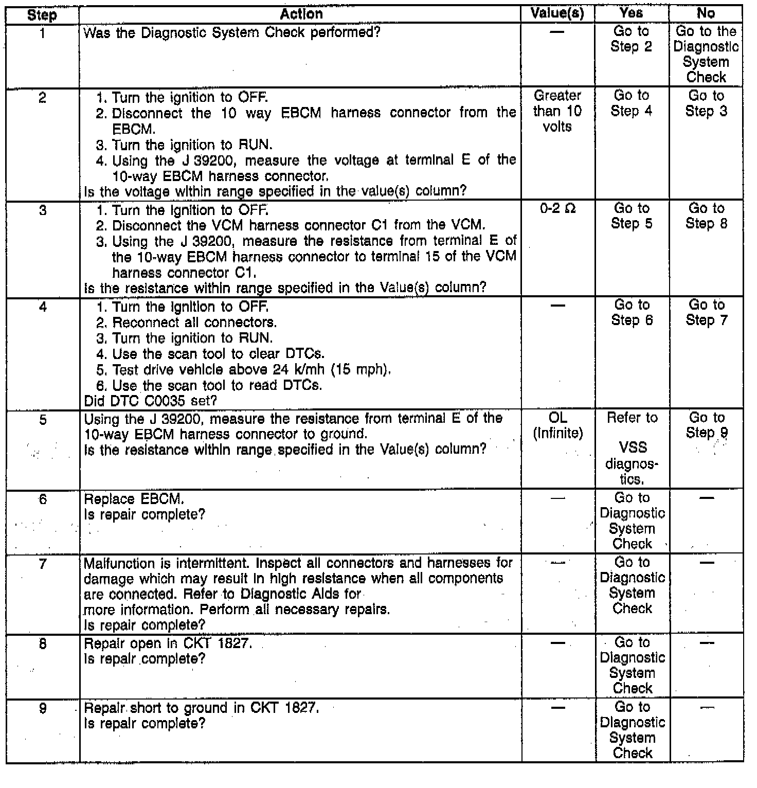 DTC C0035 Rear Speed Signal Circuit Open Or Grounded (4.3L Engines Only):