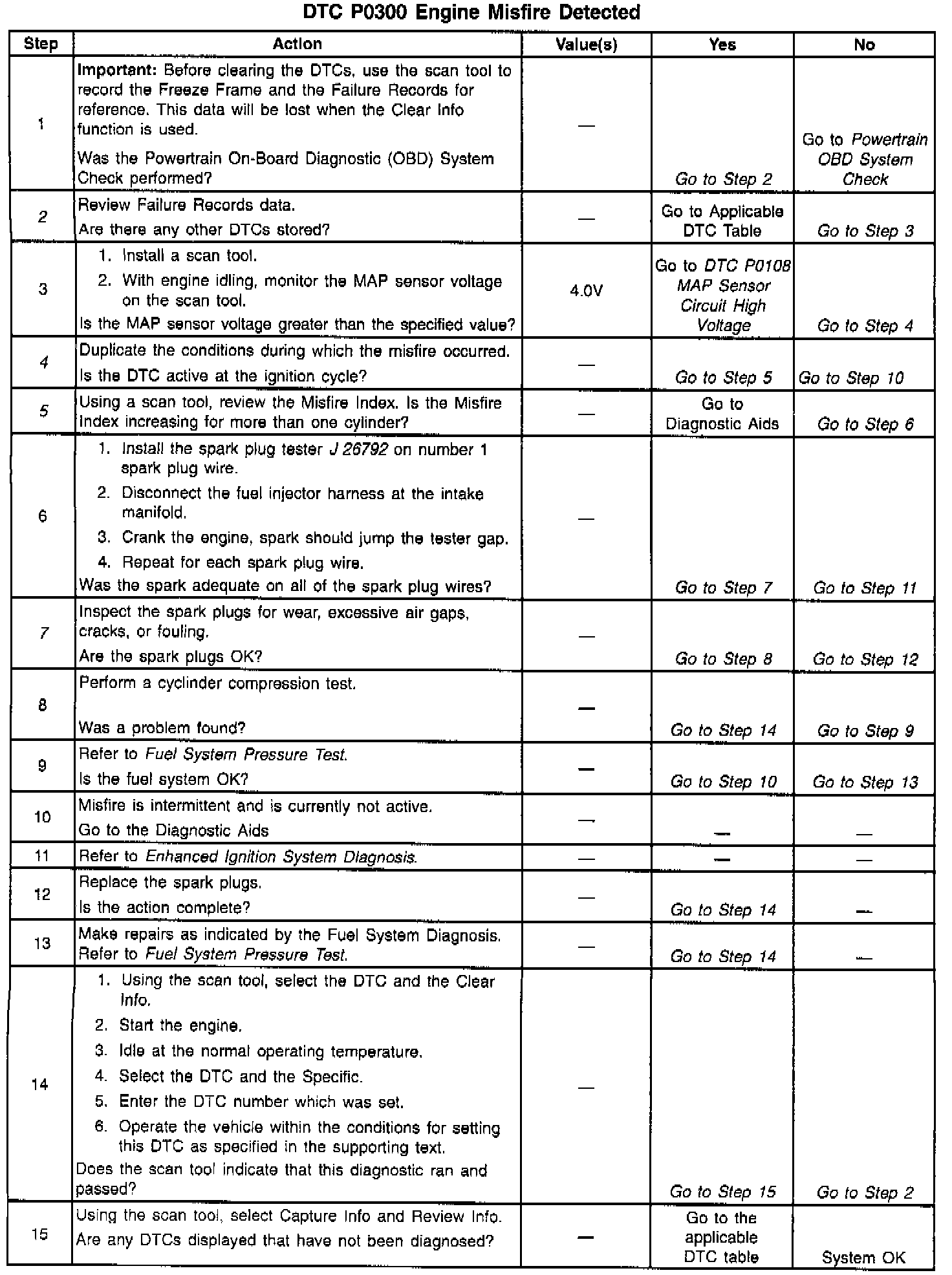 The numbers below refer to the step numbers on the diagnostic table.