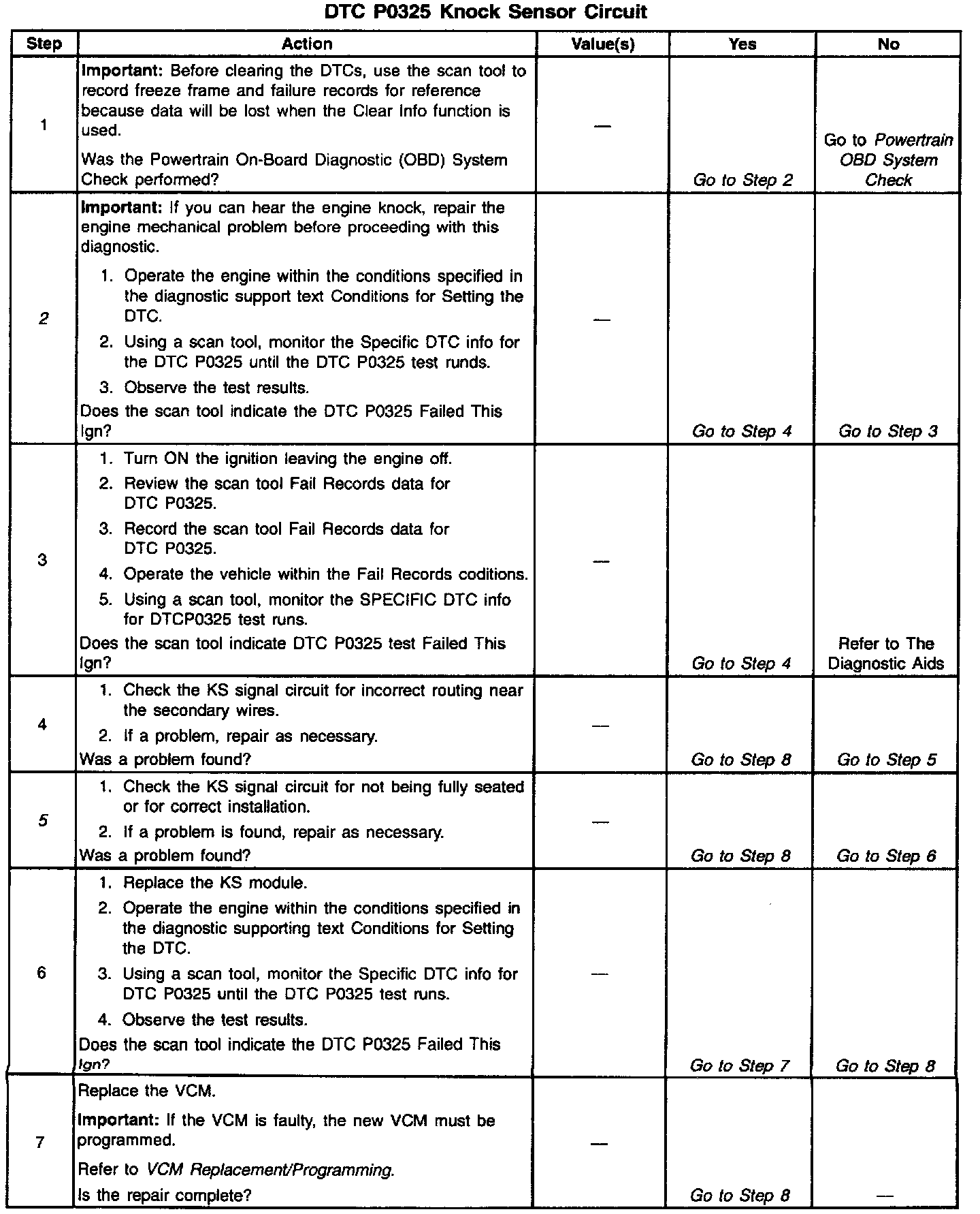 ^ The VCM will use a calculated spark retard value in order to minimize the knock during the conditions when the knock is likely to occur. The calculated value will vary based on the engine speed and load.