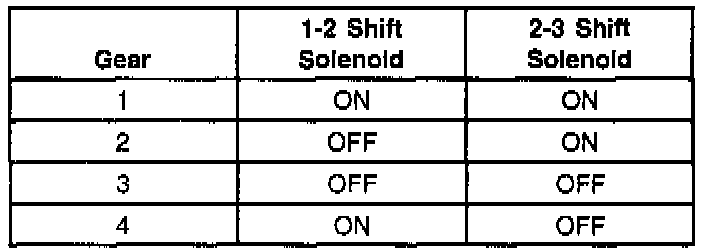 The 1-2 Shift Solenoid Valve (1-2 SS Valve) controls the fluid flow acting on the 1-2 and 3-4 shift valves. The solenoid is a normally-open exhaust valve. With the 2-3 Shift Solenoid Valve (2-3 SS Valve), the 1-2 SS Valve allows four different shifting combinations.