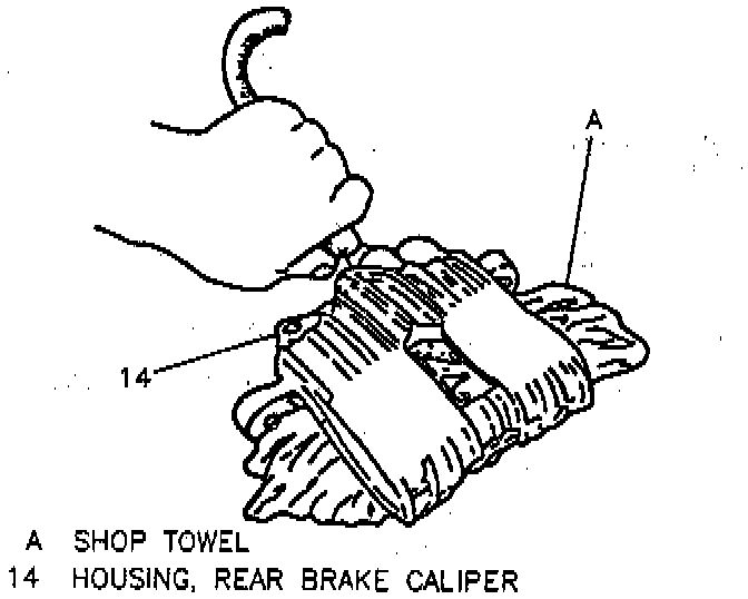 ^ Use clean shop towels to pad the inside of the caliper housing during rear brake caliper piston removal.