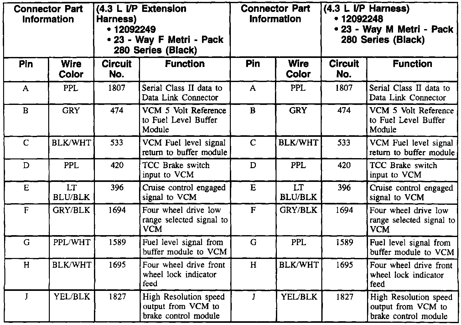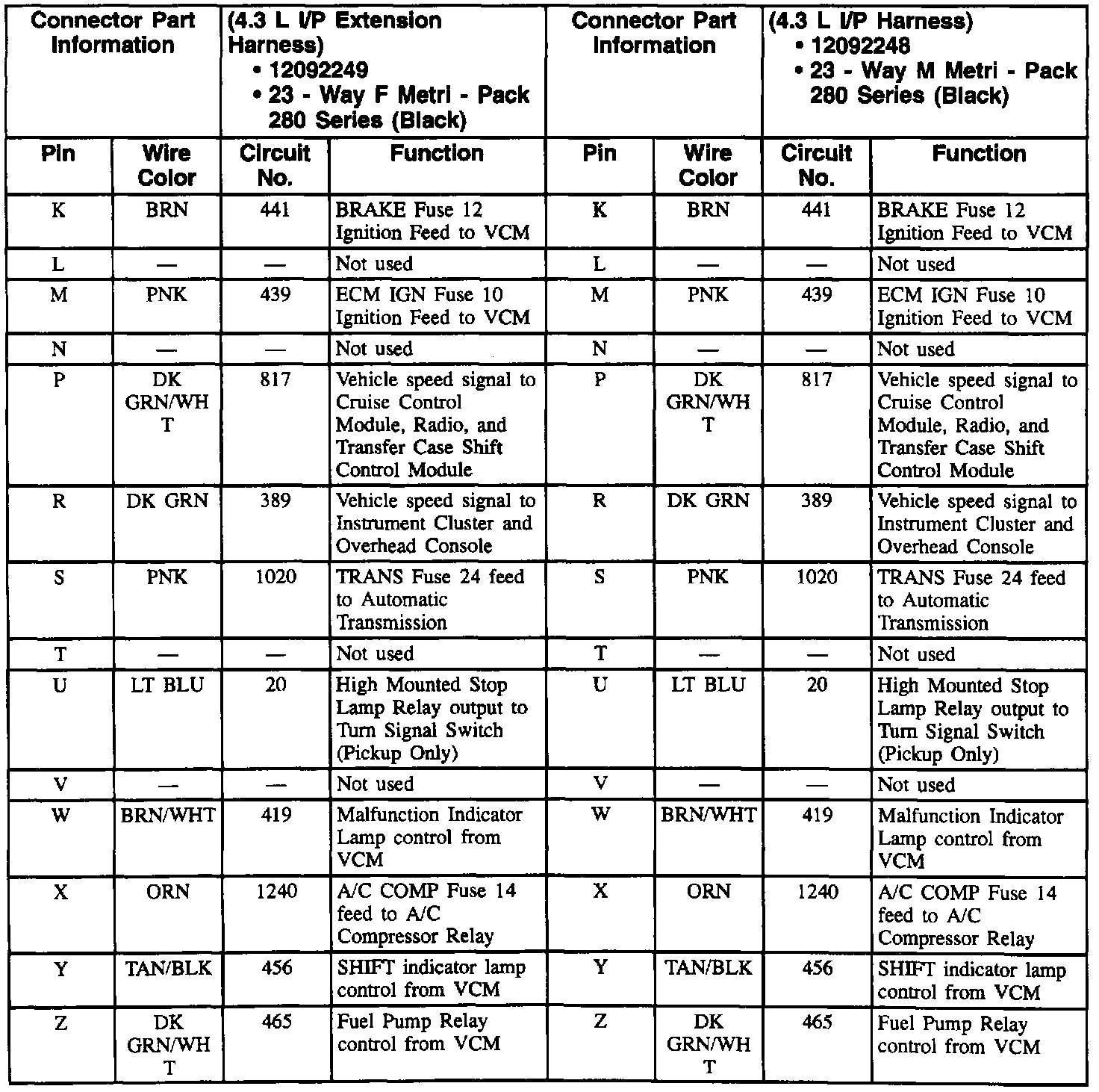 S10/T10 P/U 2WD V6-4.3L VIN W