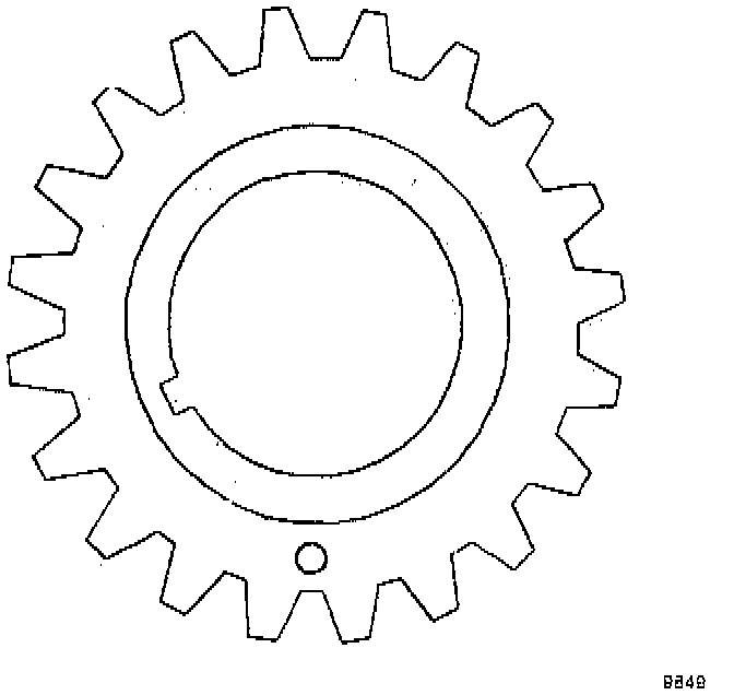 9. Remove the drive gear. Turn the balance shaft so that the timing mark on the driven gear points down.