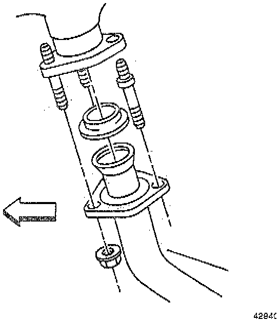 ^ When installing the exhaust pipe to the exhaust manifold, always use new nuts. Clean the exhaust manifold stud threads with a wire brush before installing the new nuts.