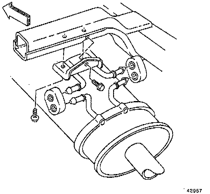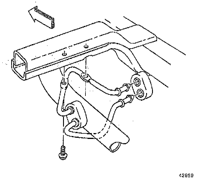 ^ When installing the new exhaust parts check for proper system alignment. Rattles or noise vibrations in the exhaust system usually are caused by misaligned parts. When aligning the system, leave all bolts or the nuts loose until all the parts are properly aligned. Then tighten, working from the front to rear.