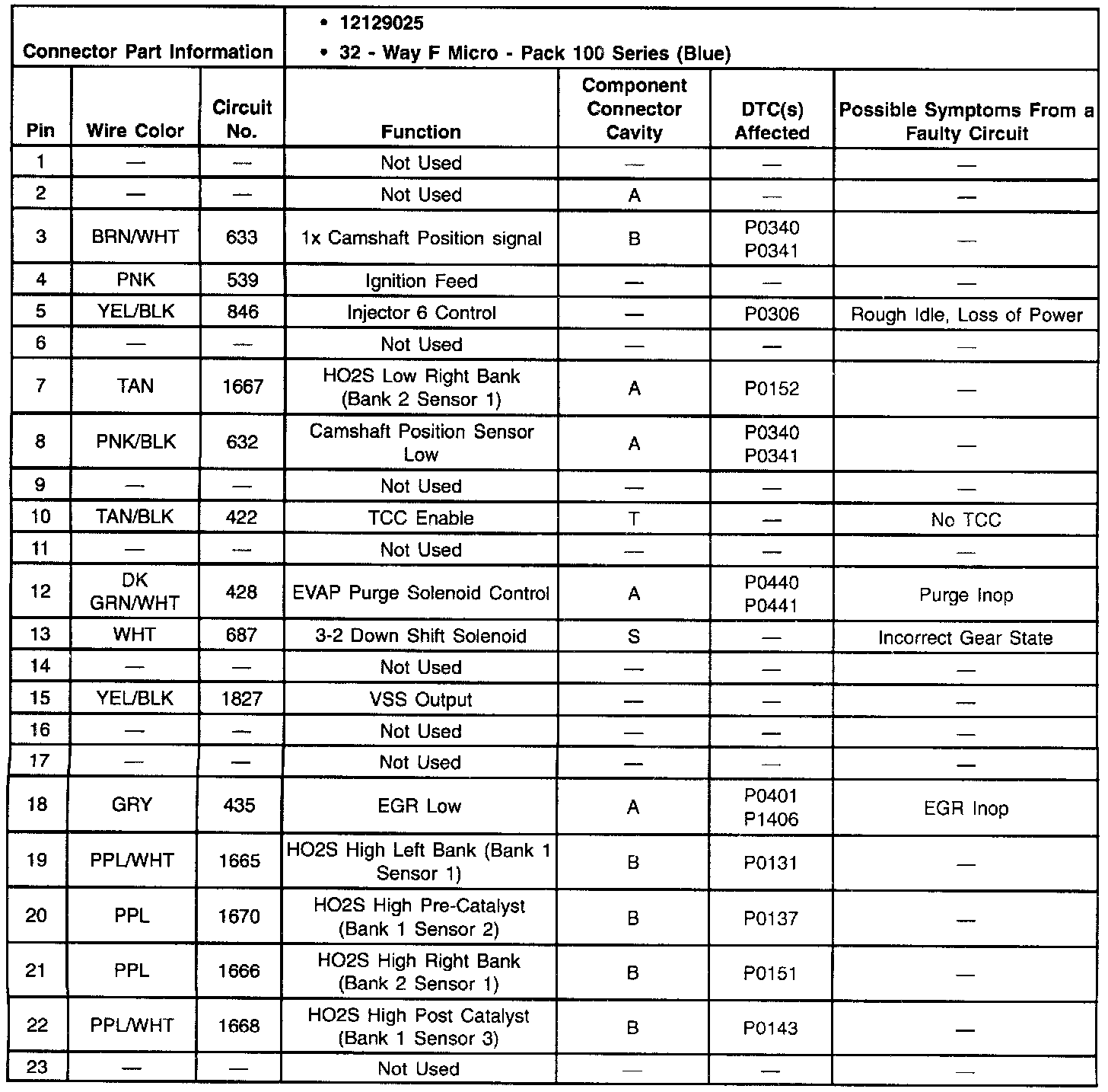 Pinout Values and Diagnostic Parameters