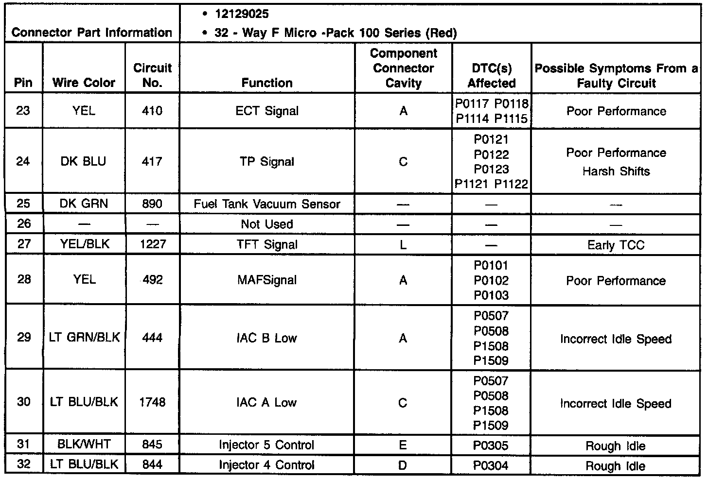 Pinout Values and Diagnostic Parameters
