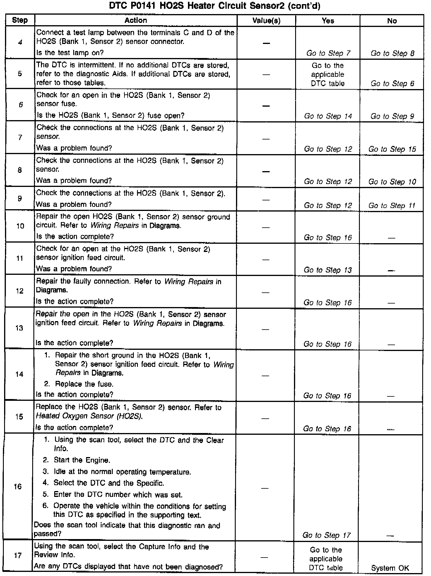 The HO2S heater provides for a faster sensor warm-up which allows the sensor to become an active in a shorter period of time and remain active during long extended idle. The DTC P0141 determines if the HO2S is functioning properly by checking the response time of the sensor. This DTC is a type B DTC.