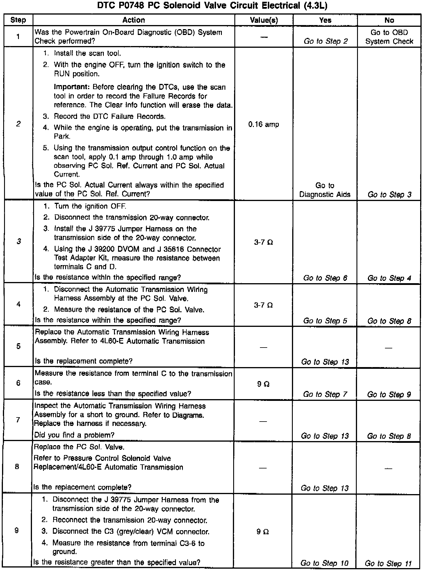 3. This step tests the PC Sol. Valve and Automatic Transmission Wiring Harness Assembly for incorrect resistance.