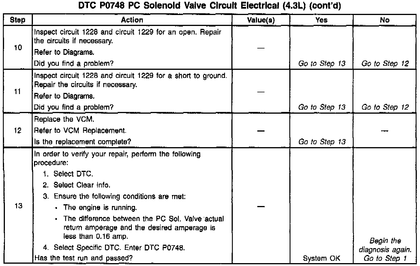 ^ The difference between the PC Sol. Valve actual return amperage and the desired amperage is 0.16 amp or greater.