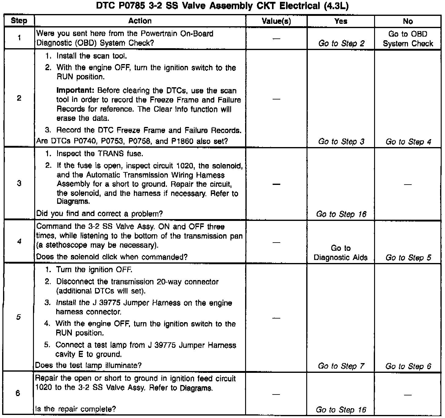 When the VCM detects a continuous open or short to ground in the 3-2 SS Valve Assy. circuit or the 3-2 SS Valve Assy, then DTC P0785 sets. DTC P0785 is a type A DTC.