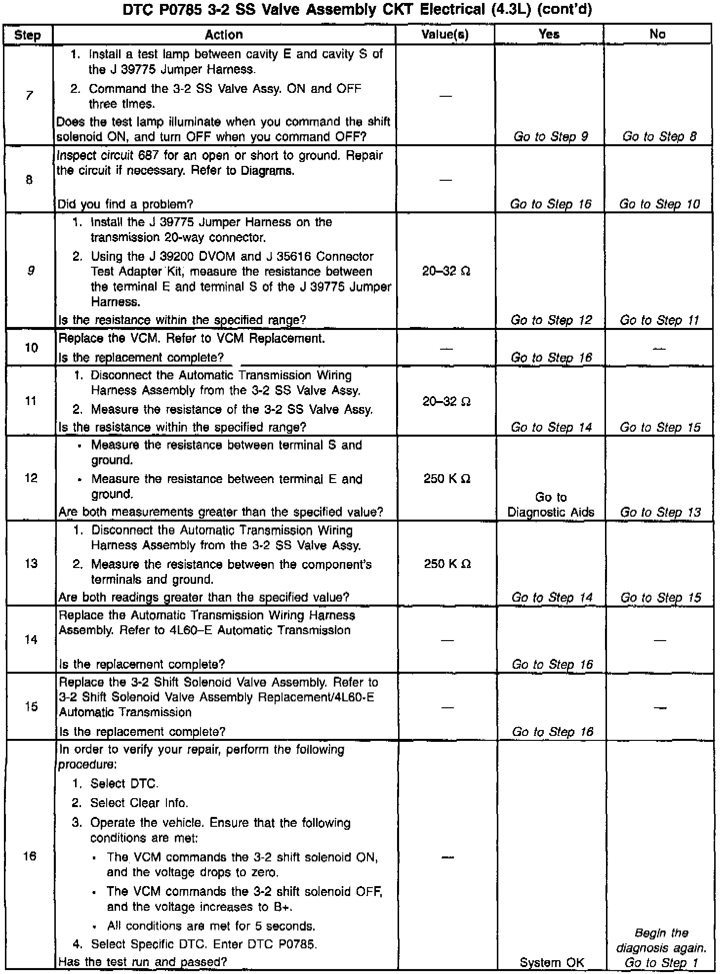 9. This Step measures the resistance of the Automatic Transmission Wiring Harness Assembly, and the 3-2 SS Valve Assy.