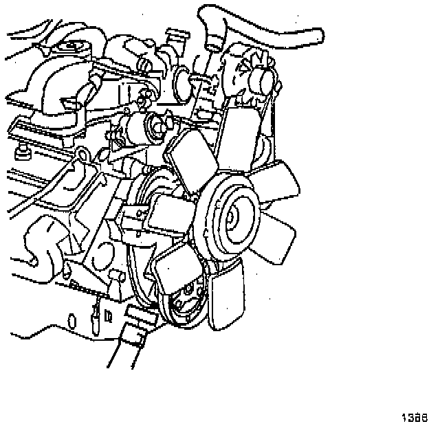 Position the upper radiator hose around the generator (as shown).