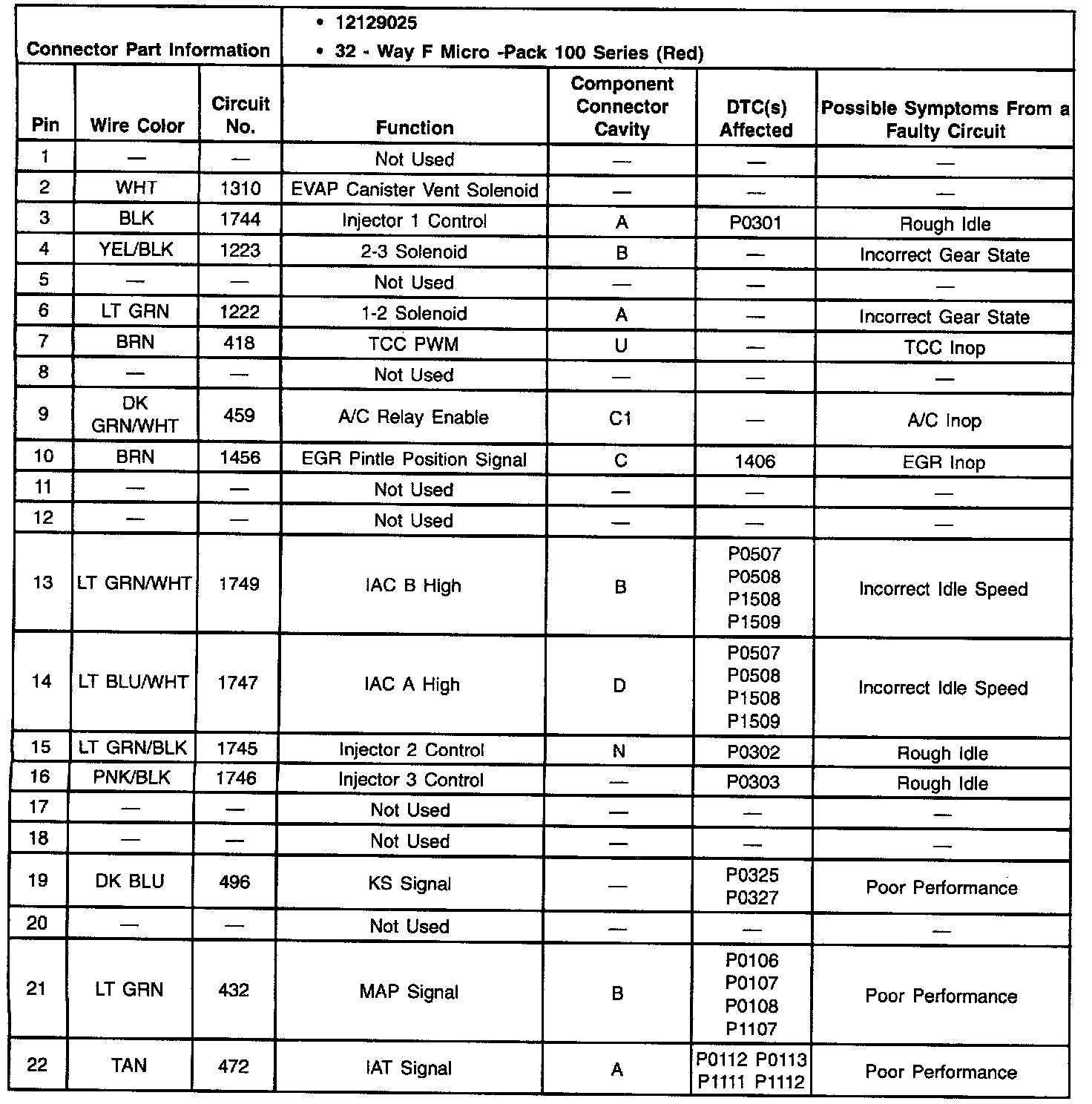 Pinout Values and Diagnostic Parameters