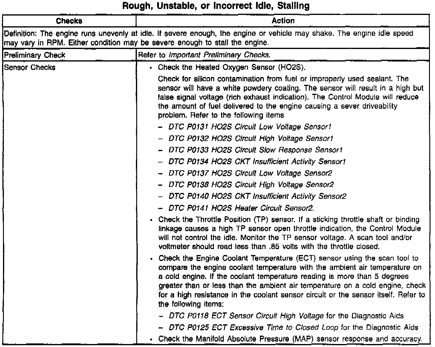 Rough, Unstable, or Incorrect Idle, Stalling