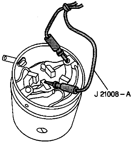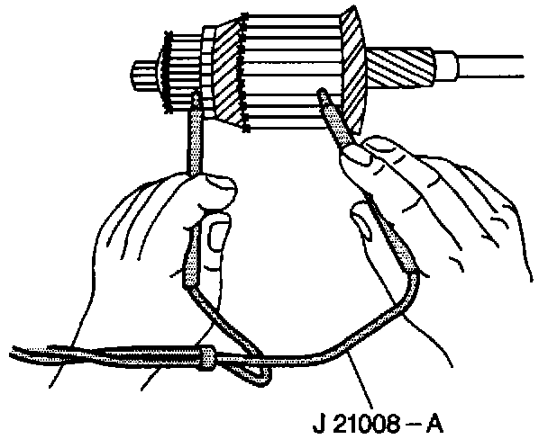 8. Inspect the armature for grounds with a self-powered test lamp (continuity tester). Use J 21008-A.