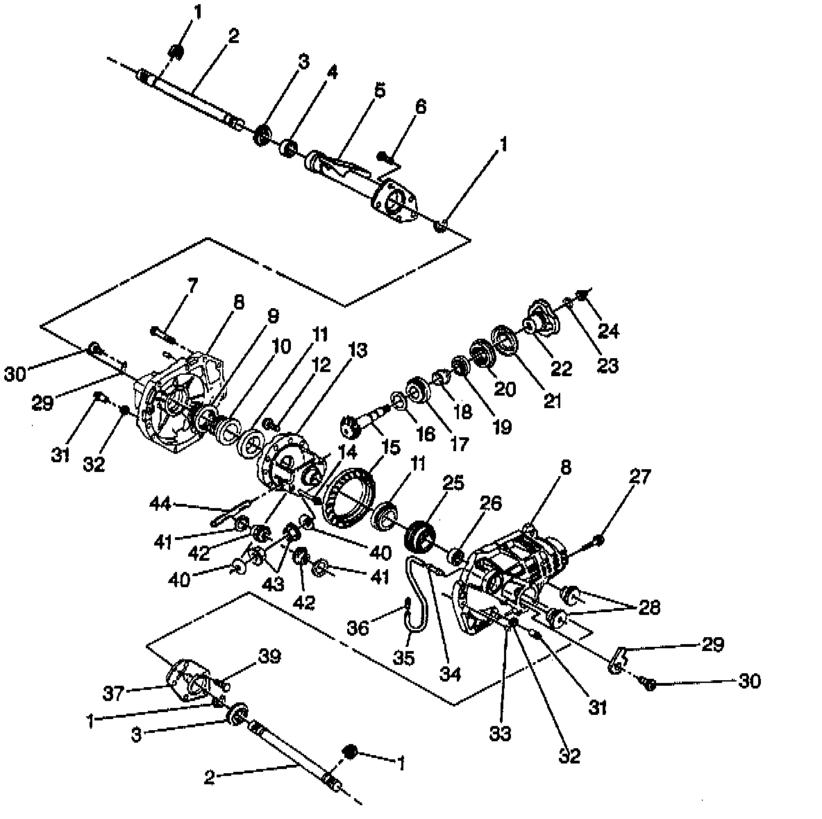 4. Bolts from propeller shaft flange to front axle.