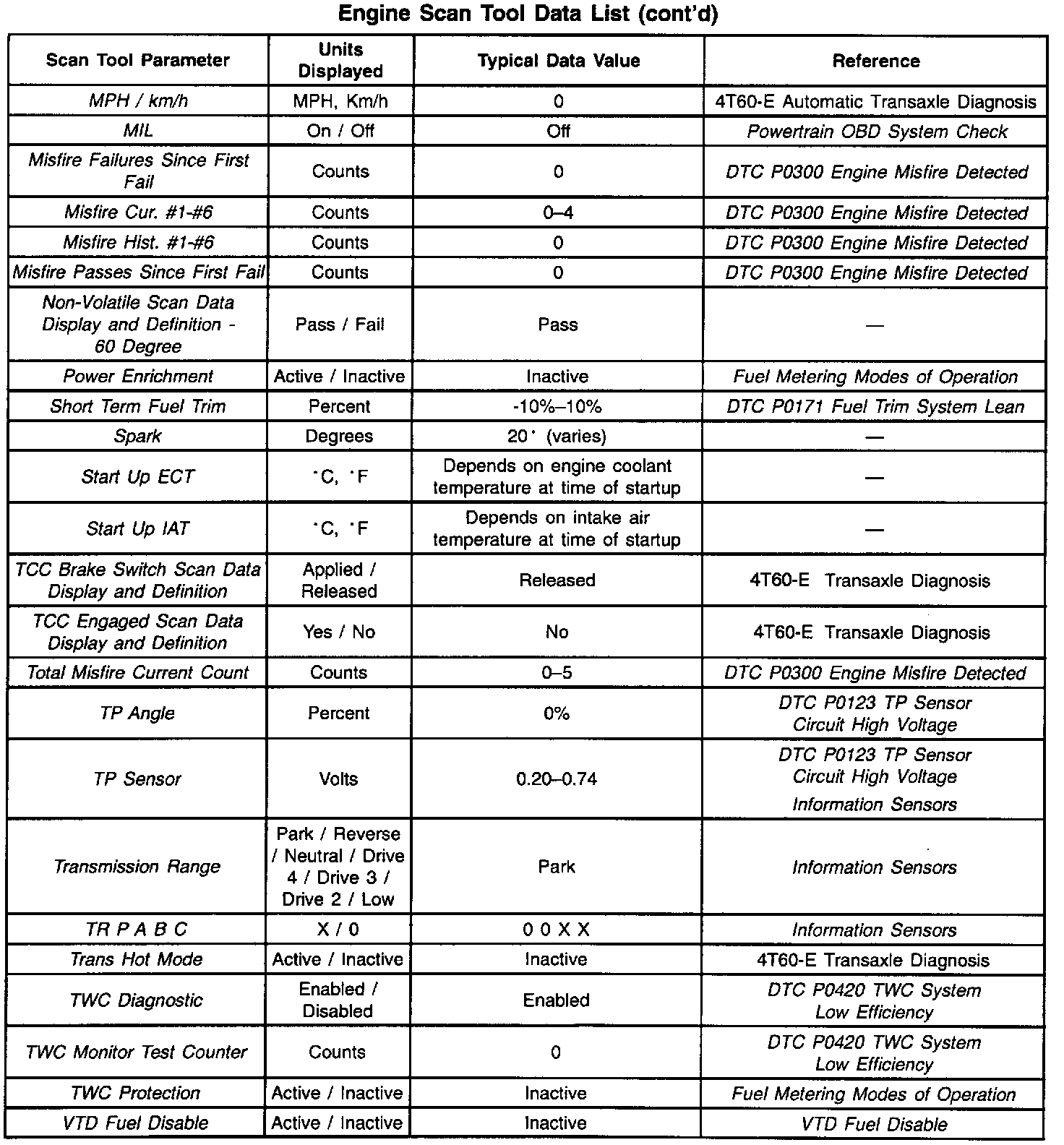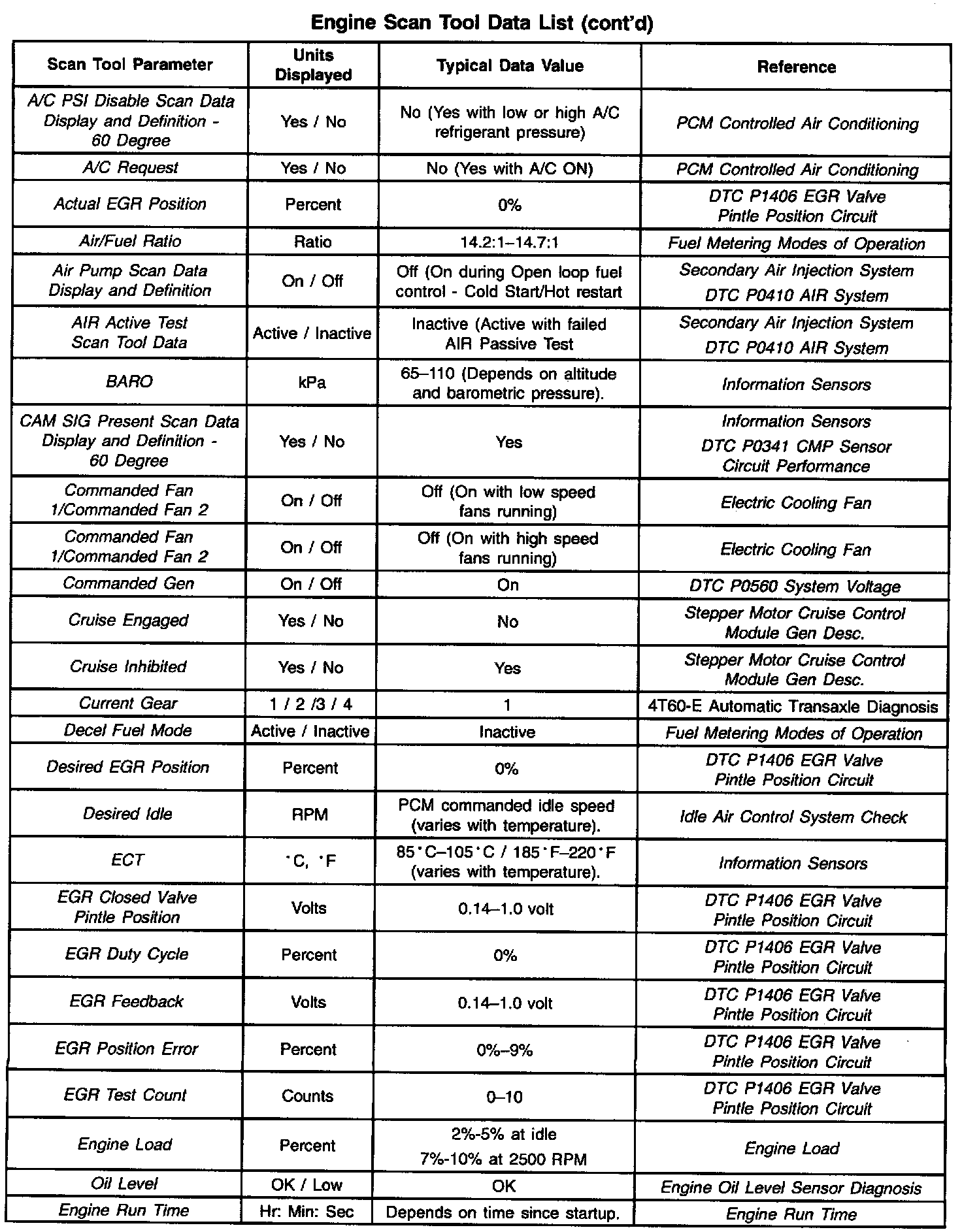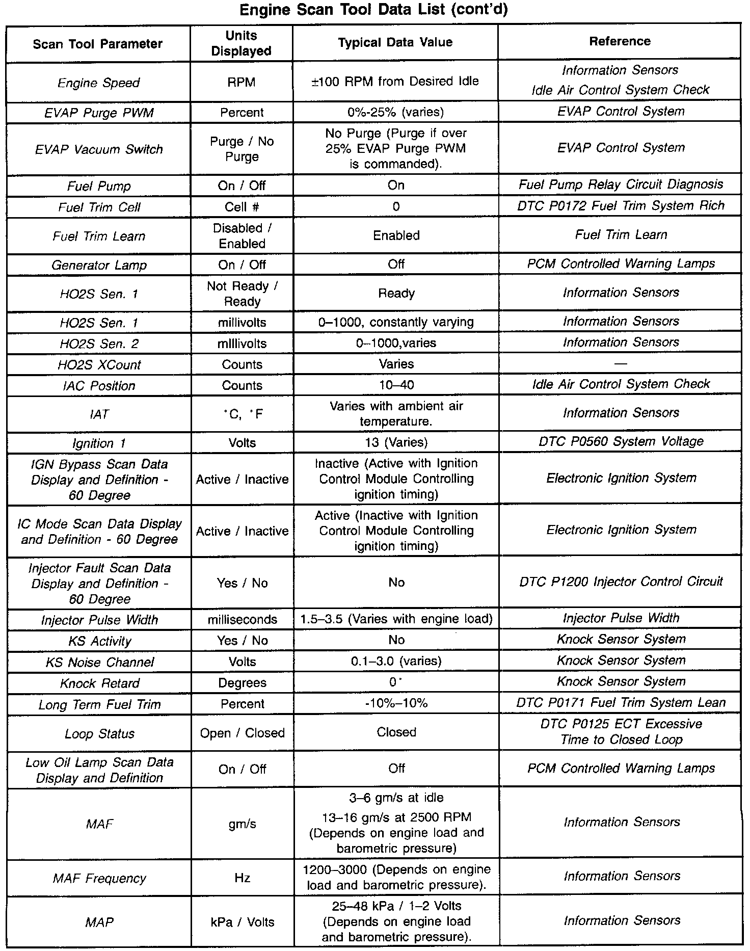Scan Tool Data List