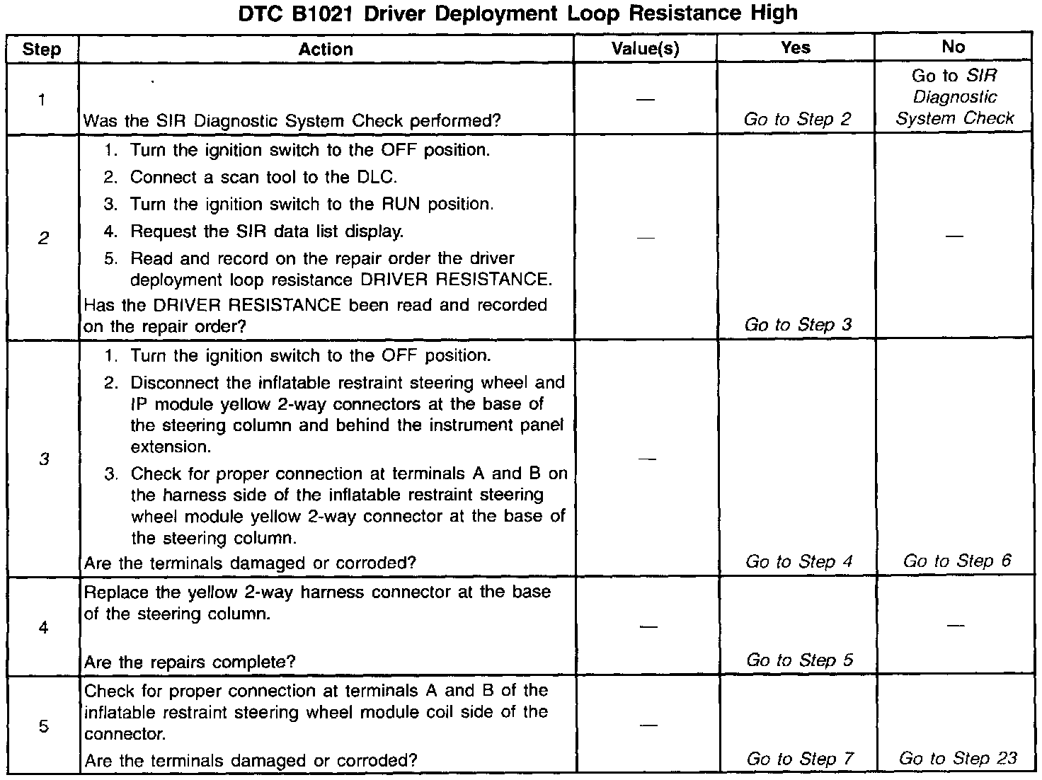 ^ The inflatable restraint steering wheel module steering column connector terminals A and B.