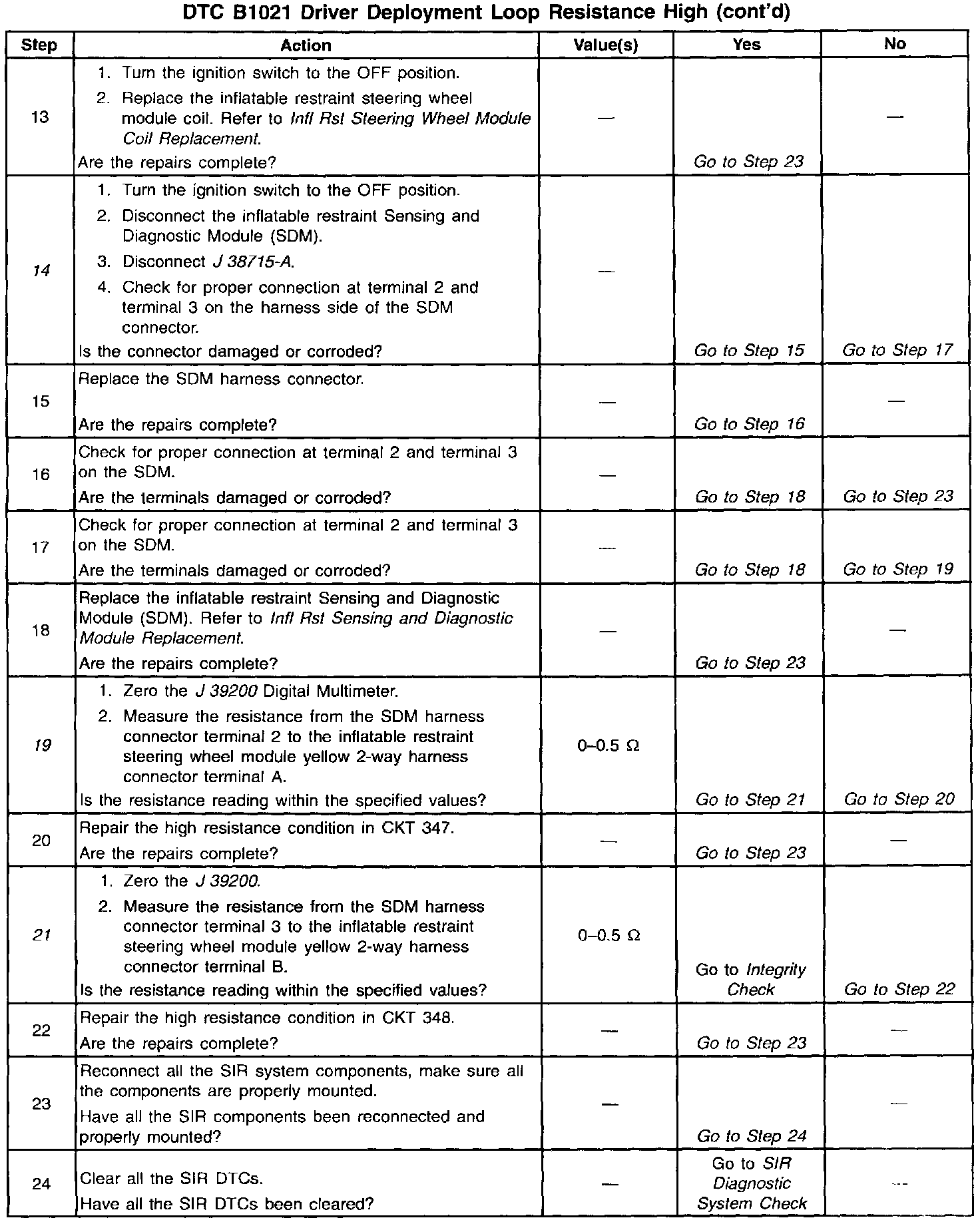 When measurements are requested in this table, use J 39200 Digital Multimeter with the correct terminal adapter from J 35616-A Connector Test Adapter Kit. When a check for proper connection is requested, refer to Intermittents and Poor Connections. Intermittent Problems