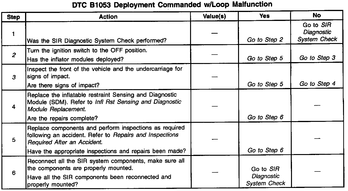 2. If the inflator module(s) has not deployed, DTC B1053 may have set falsely.