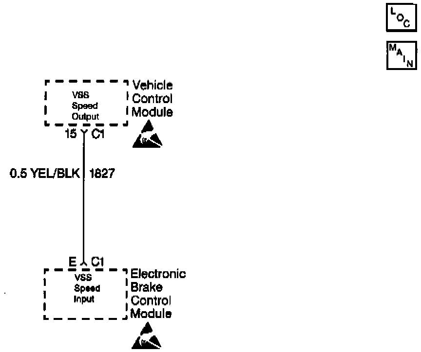 The Electronic Brake Control Module (EBCM) receives the rear wheel speed signal from the Vehicle Control Module (VCM). The rear wheel speed signal originates from the Vehicle Speed Sensor (VSS) which is connected to the VCM.