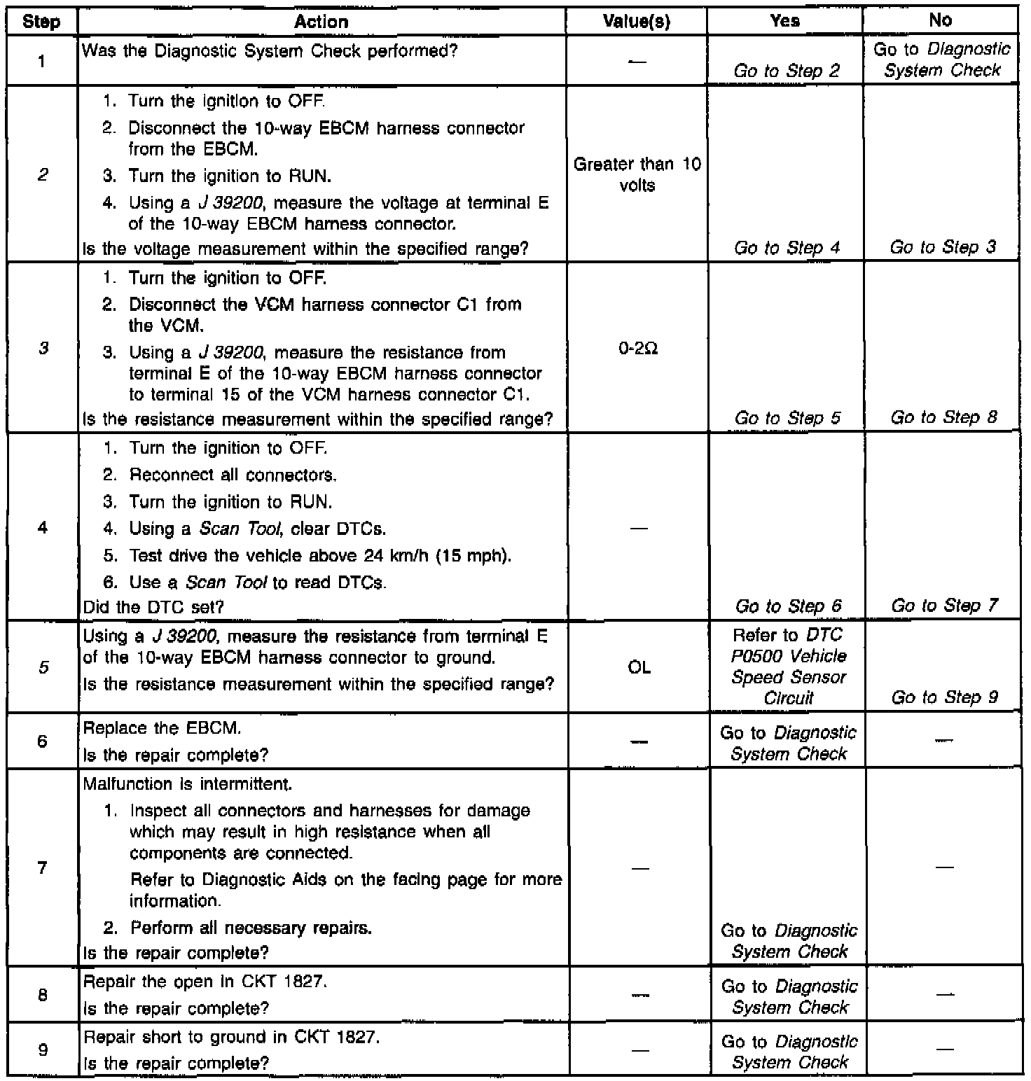 ^ EBCM seeing the rear speed signal line drop out and return. This malfunction can be caused by a malfunction in the VSS, or a fault in CKT 821, 822 or 1827.