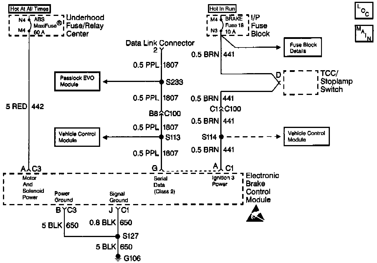This DTC usually sets because of an open/shorted solenoid coil within the EBCM. The solenoid coil is located within the Brake Pressure Modulator Valve (BPMV) and is not serviceable. If the test does not repair the DTC, then replace the EBCM.