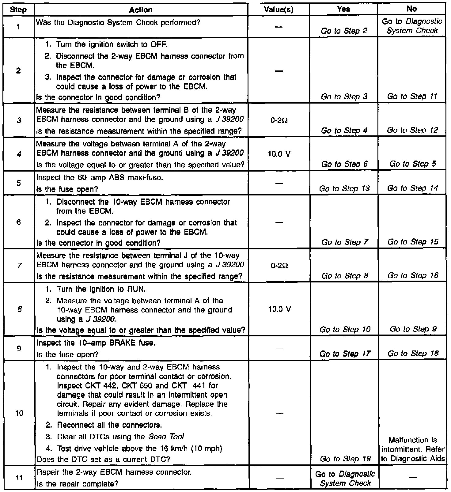 ^ Low voltage exists on the EBCM solenoid driver circuit when high voltage is expected (the solenoid is not energized)