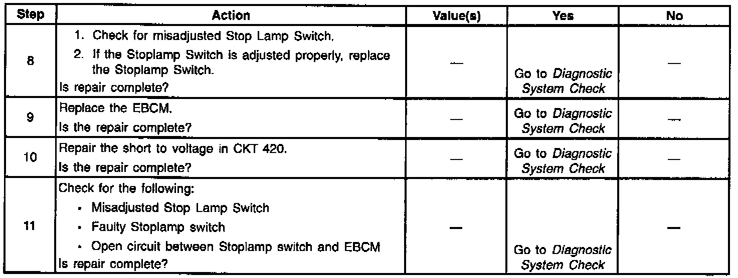 3. This step checks for a short to voltage in the Stop Lamp Switch circuit between the Stoplamp Switch and the EBCM.