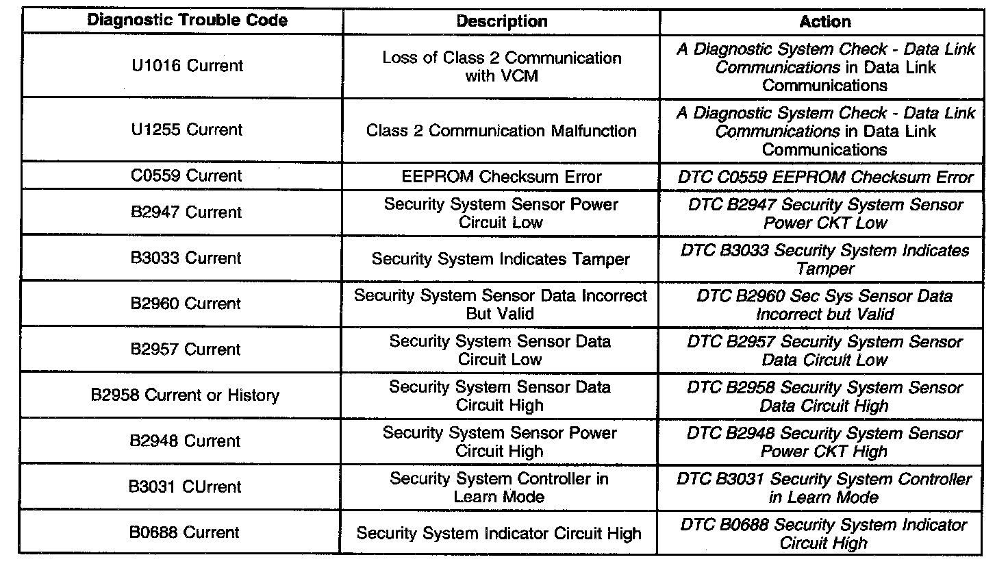 Diagnostic Trouble Code Descriptions