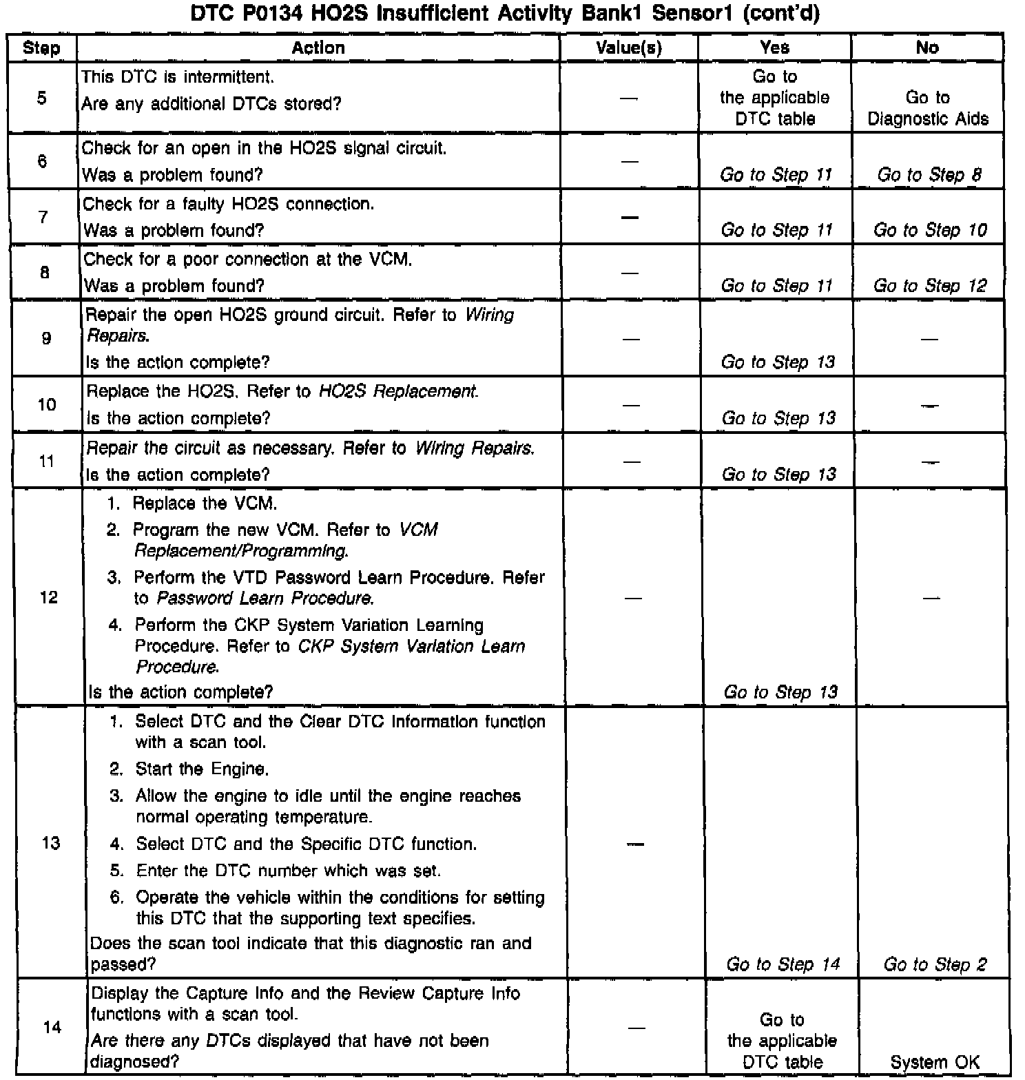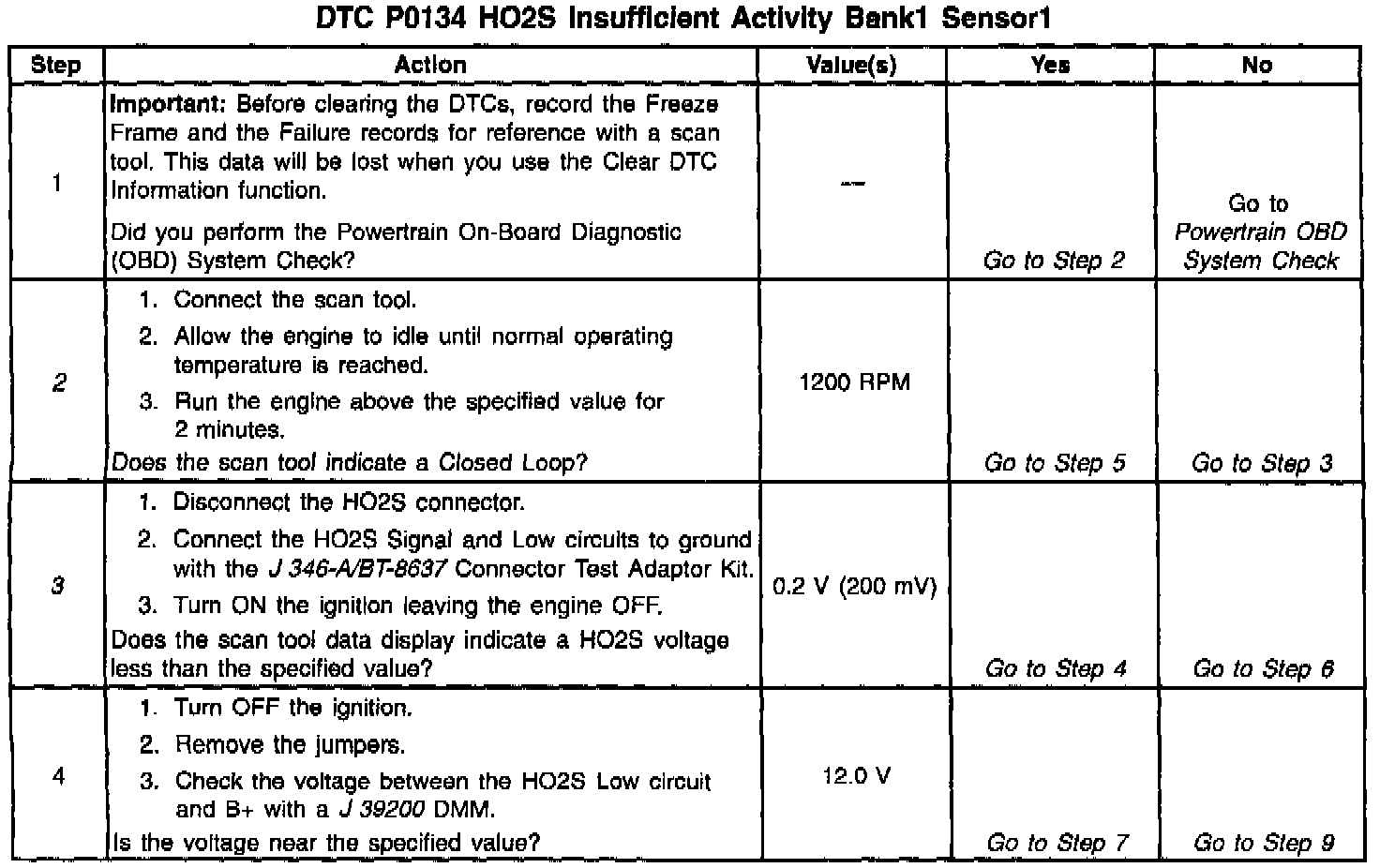 The DTC P0134 determines if the HO2S at the HO2S circuit has developed an open.