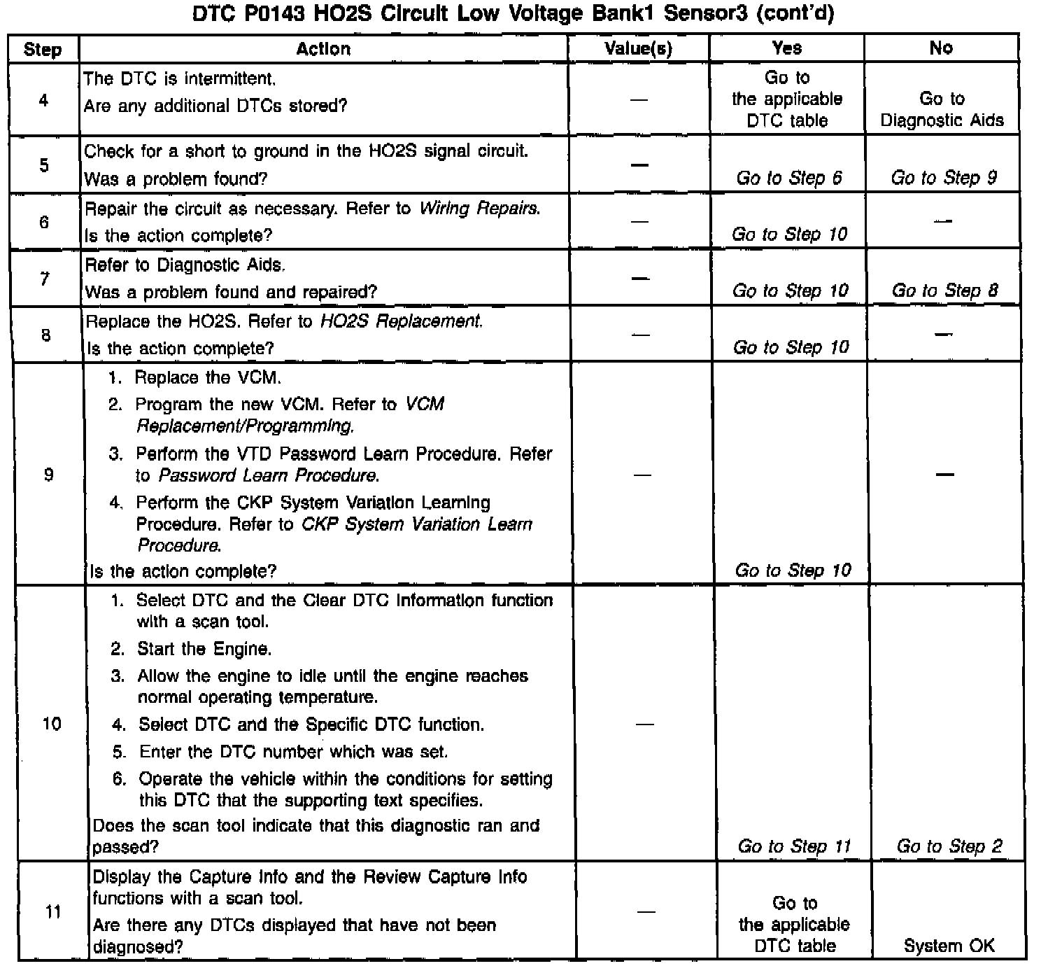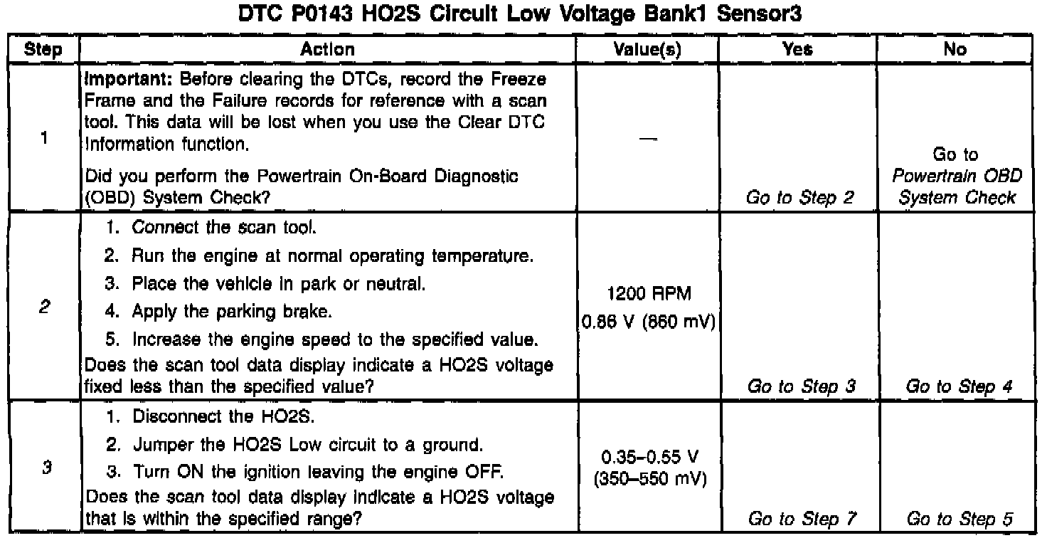 The HO2S heater provides for a faster sensor warm-up which allows the sensor to become active in a shorter period of time. The sensor will also remain active during a long extended idle. The DTC P0143 determines if the HO2S or circuit is shorted low by checking for a lean condition during a steady throttle and power enrichment (PE).