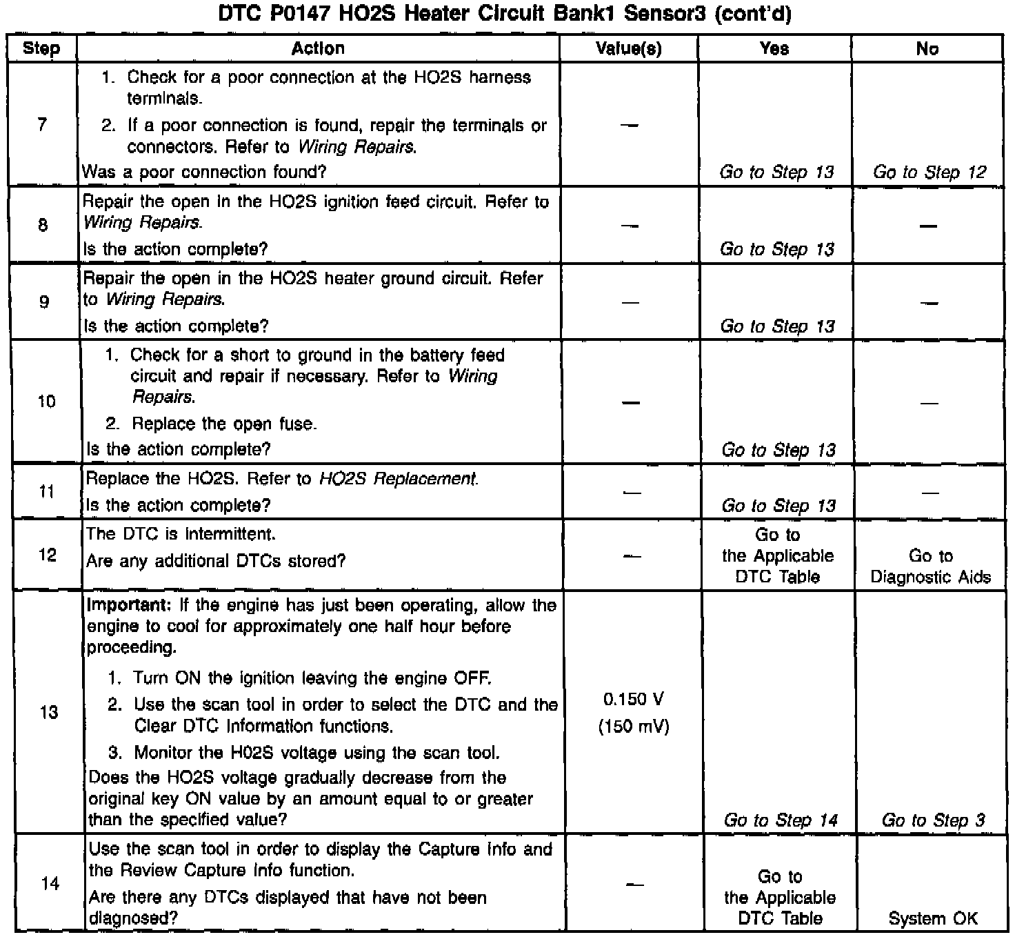 6. This step checks for an open or shorted HO2S heater element. The heater element resistance will vary according to HO2S temperature (a hot HO2S heater element will measure a much higher resistance than a HO2S heater element at room temperature). It is important to allow the HO2S to cool before measuring the HO2S heater element resistance.