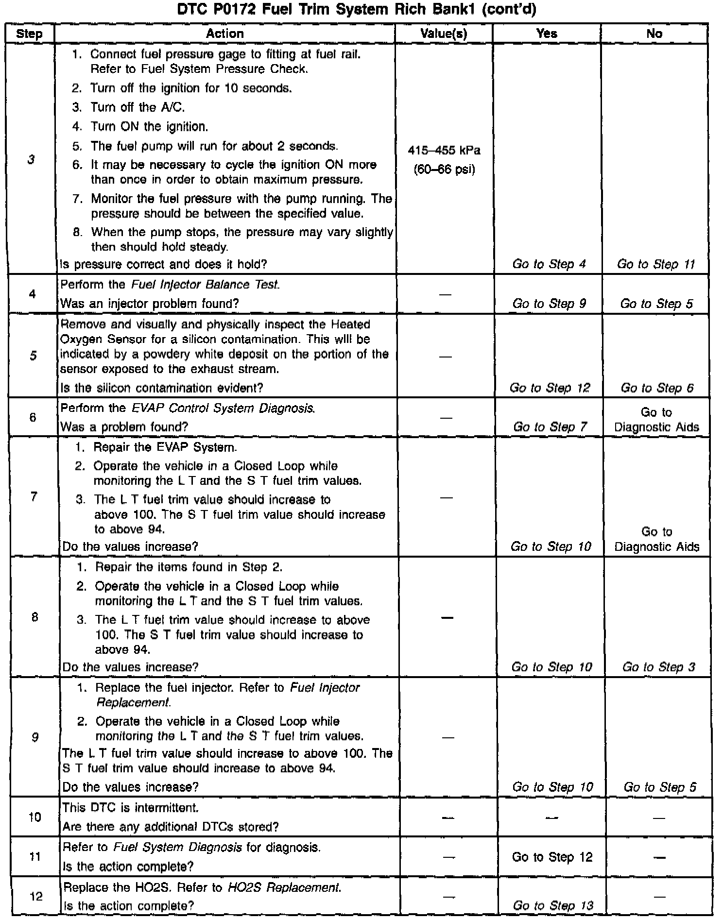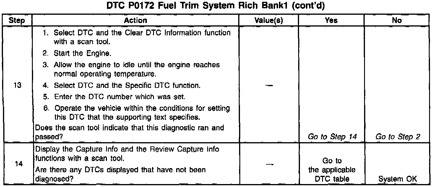 If using the diagnostic tables does not isolate the problem, try monitoring the L.T. fuel trim and fuel trim cell while operating the vehicle under various loads. This may isolate the condition which caused the setting of the current DTC.