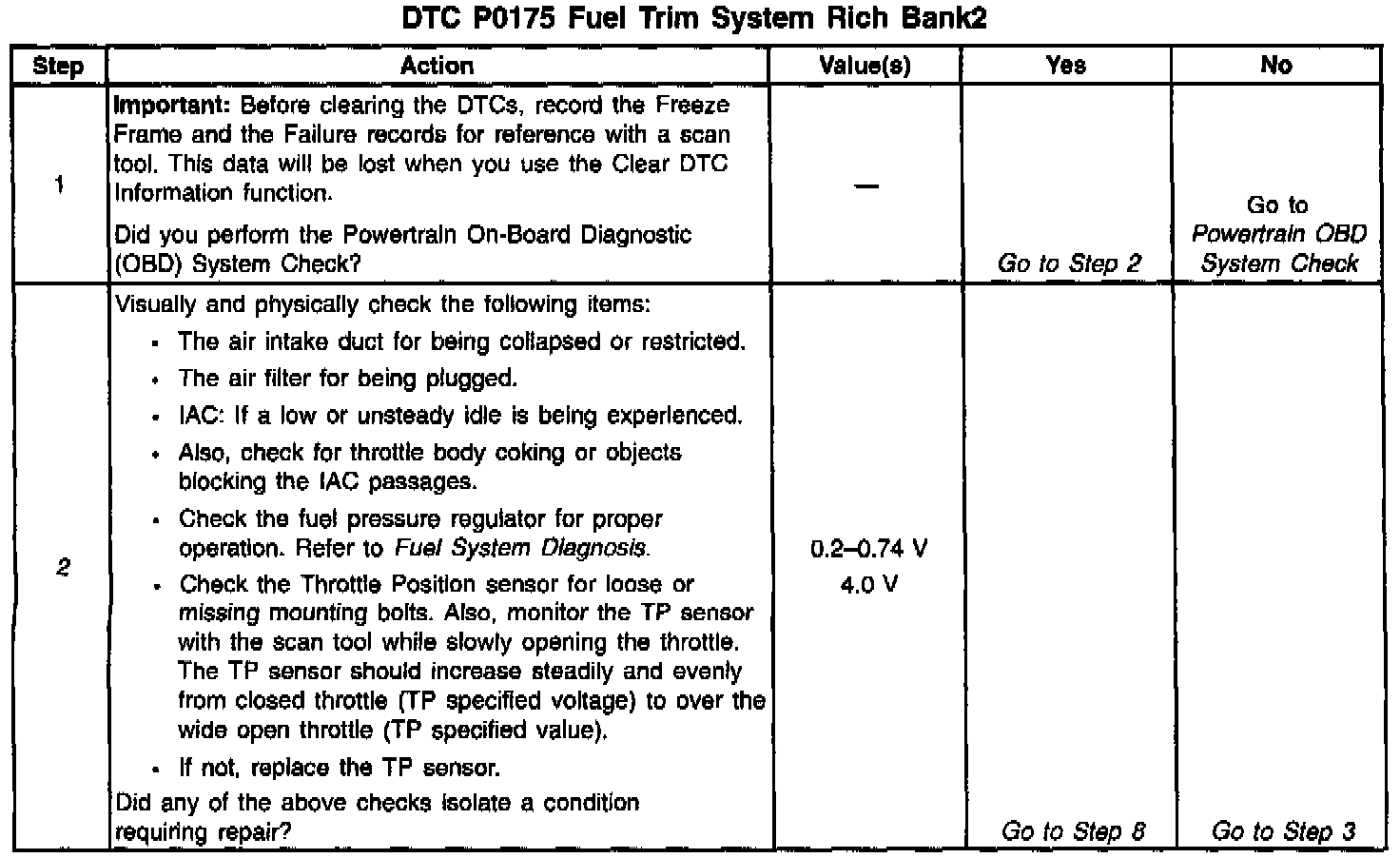 2. Visually and physically checking items which may cause a rich condition may determine the cause of the DTC P0175 being set.