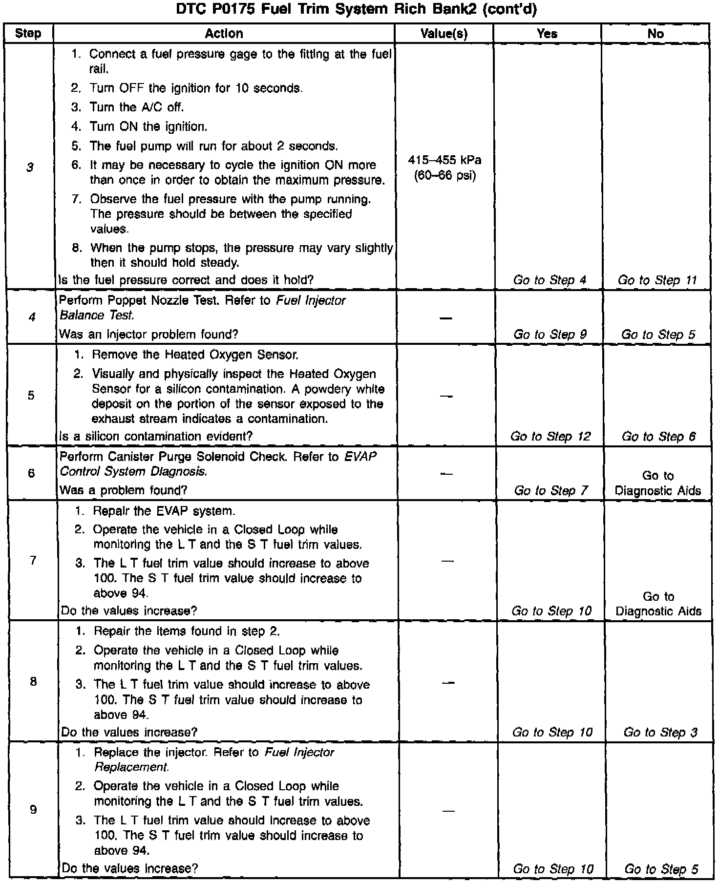 If using the diagnostic tables does not isolate the problem, try monitoring the L.T. fuel trim and fuel trim cell while operating the vehicle under various loads. This may isolate the condition which caused the setting of the current DTC.