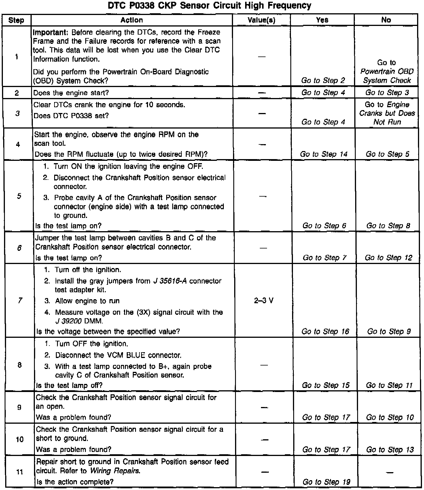 7. This test checks the crank sensor, crank sensor signal circuit and the VCM.